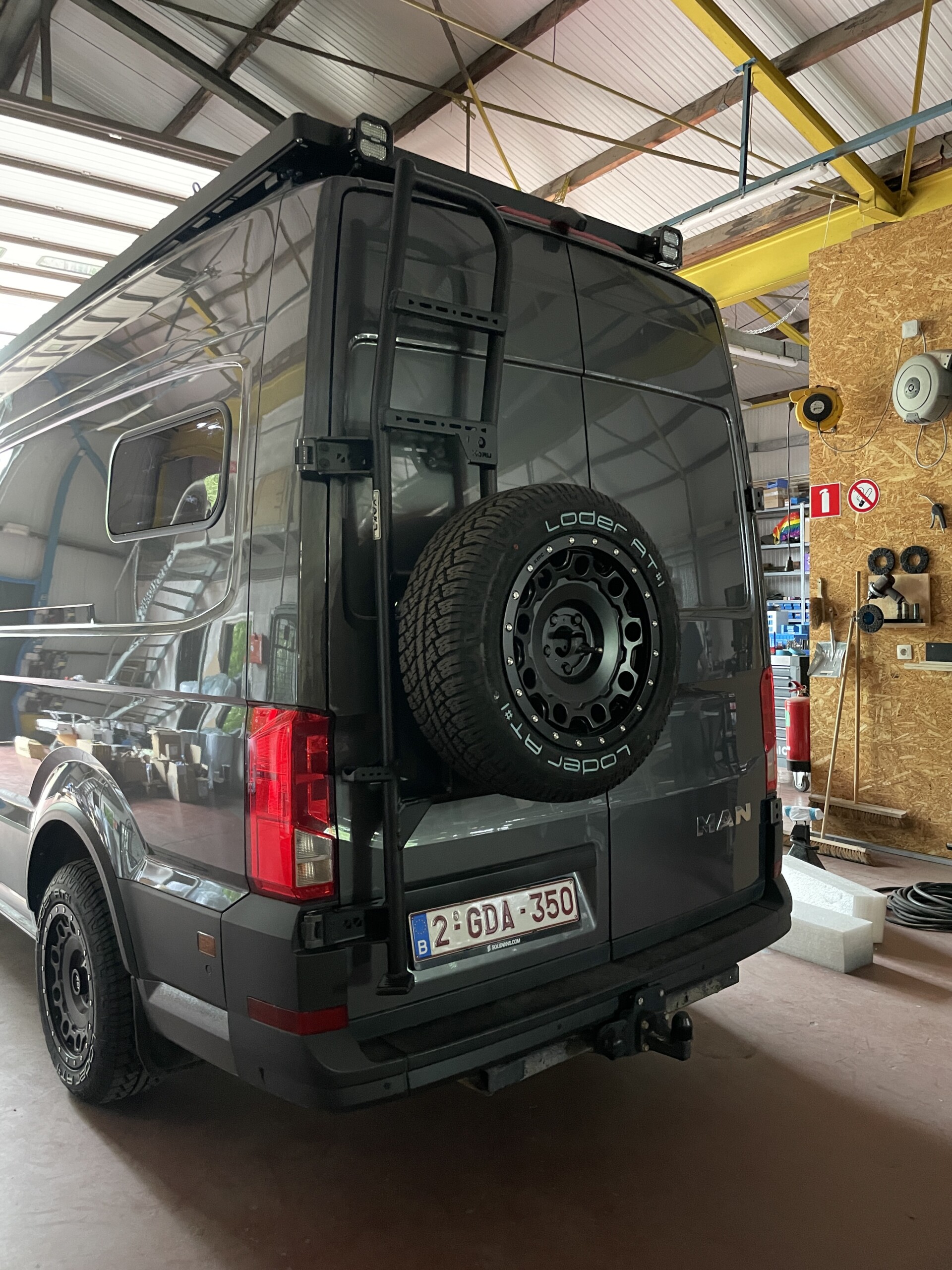 Deze reservewieldrager mét ladder zorgt ervoor dat je de plaats voor je reservewiel kan benutten voor bijvoorbeeld een watertank. Het geeft je bus meteen een offroad look en je kan je groter reservewiel met gemak monteren.