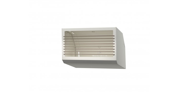 De SAO heeft dezelfde compacte hoogte als de Tebe, maar door de gesloten aluminium achterwand en het open front met expanderkoord is hij bijzonder praktisch en direct toegankelijk.