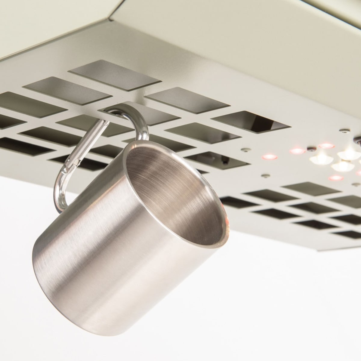 Je behoudt maximale modulariteit terwijl je extra opbergmogelijkheden én licht toevoegt, zonder ruimte te verliezen. Het rode licht is ideaal voor ’s nachts (geen verblinding), terwijl het witte licht handig is bij het in- en uitladen of als indirecte kastverlichting.